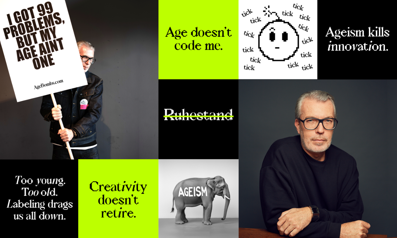 What Robert has built over more than three decades now comes together in Age Bombs—a creative and strategic ecosystem that breaks old age stereotypes, makes age diversity visible as a strength, and sets organizations in motion. Conceived as a movement with conviction. Structured as a creative, strategy-driven agency.